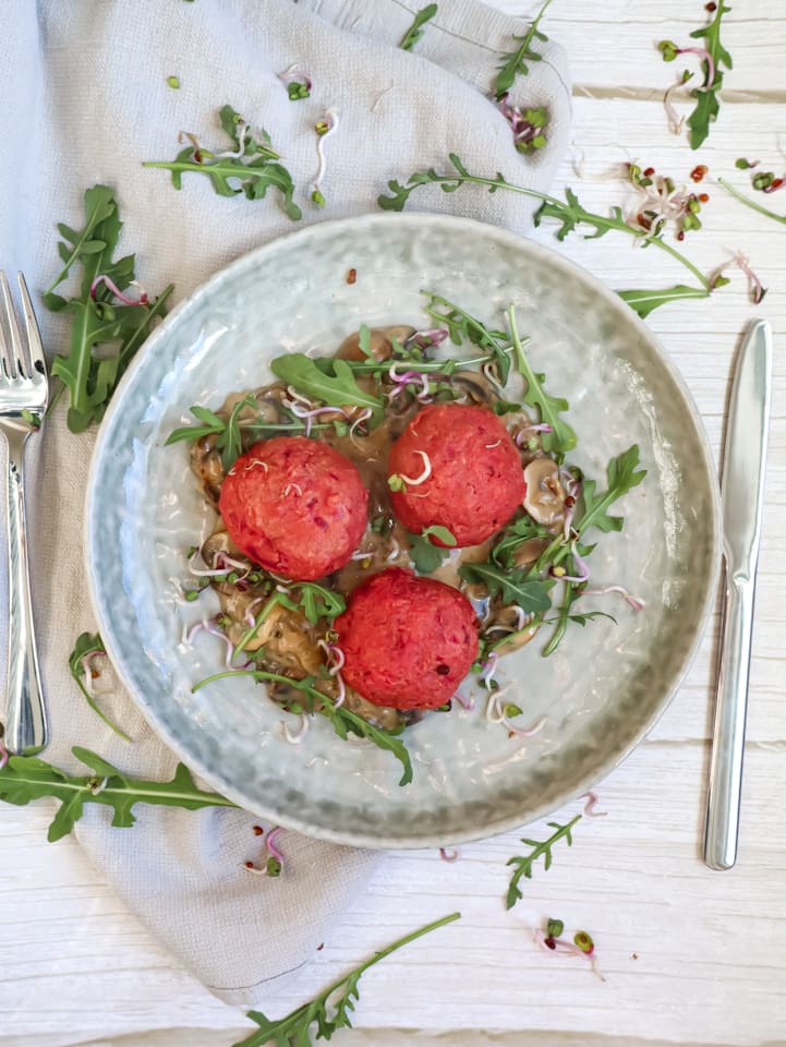 Perfekt als vegetarische Hauptspeise mit einer leckren Sauce wie z.B. Pilze oder Kohlrabi. Die kleinen Knödel passen aber auch super als Beilage zu Fleisch oder Fisch. Die kräftige Farbe macht sie außerdem zum Hingucker auf jedem Teller. Ideal für gemütliche Wochenenden oder wenn du deinen Gästen etwas Besonderes zaubern möchtest.