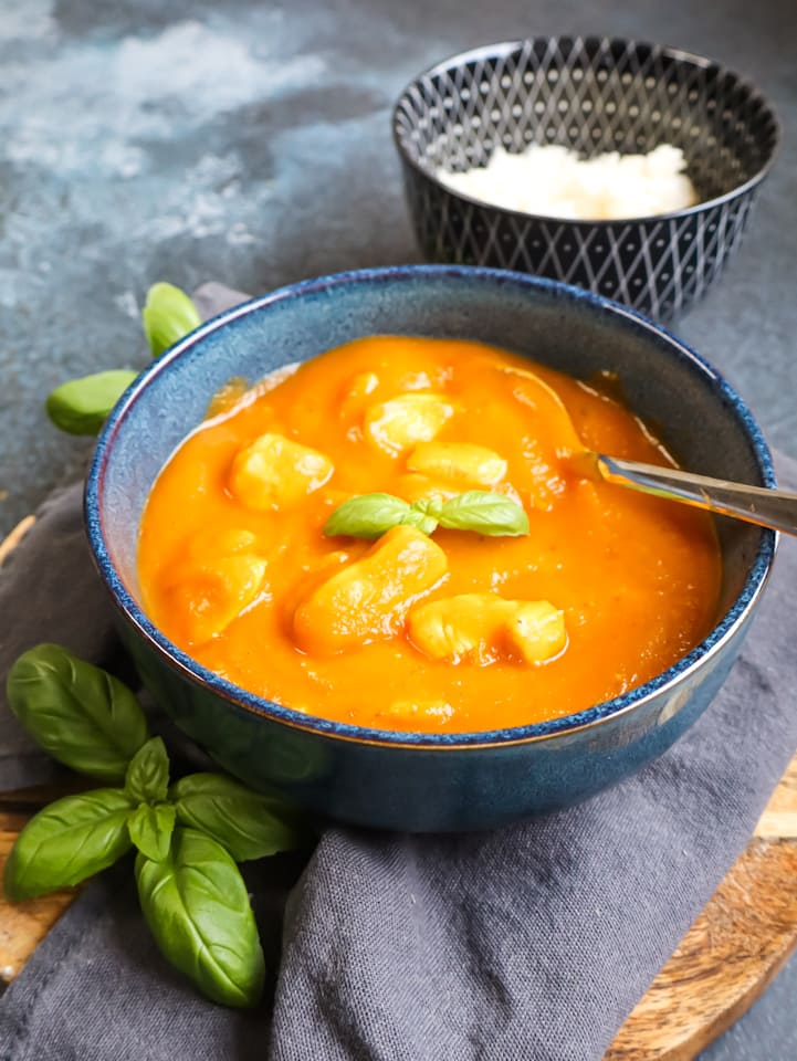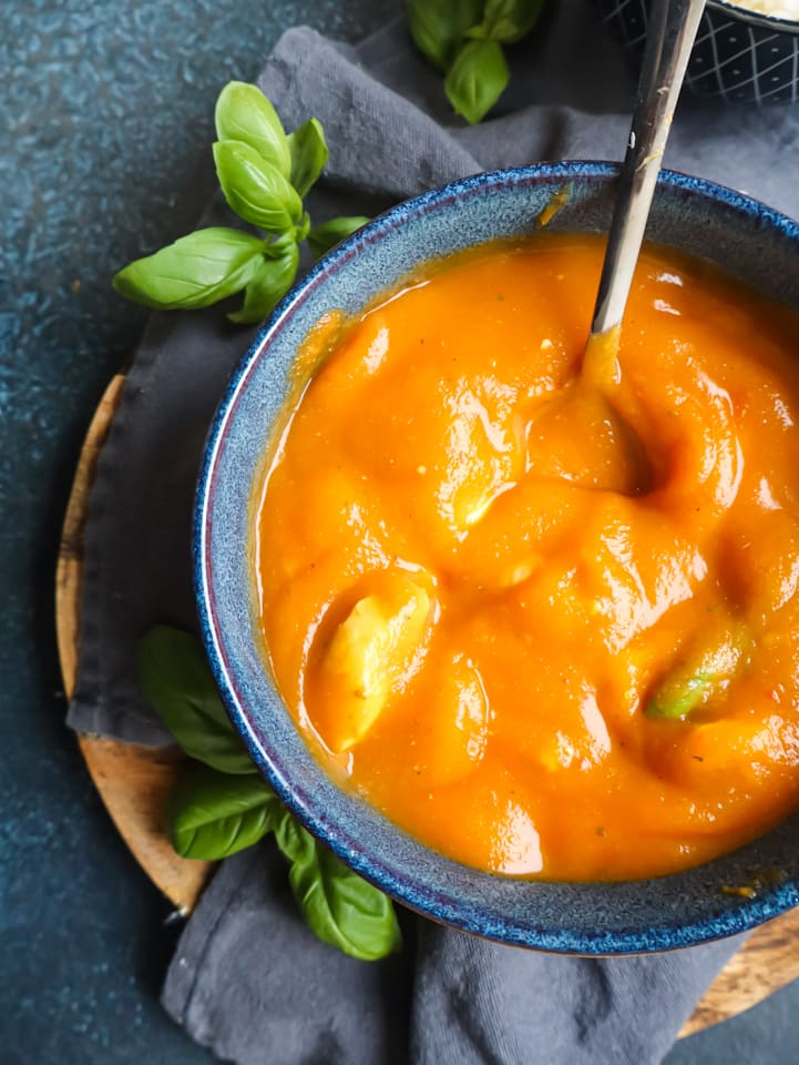 Butternuss muss zwar geschält werden, ABER er wird im Ofen deutlich süßer – der Zucker im Kürbis karamellisiert und er wird lecker cremig und süß.