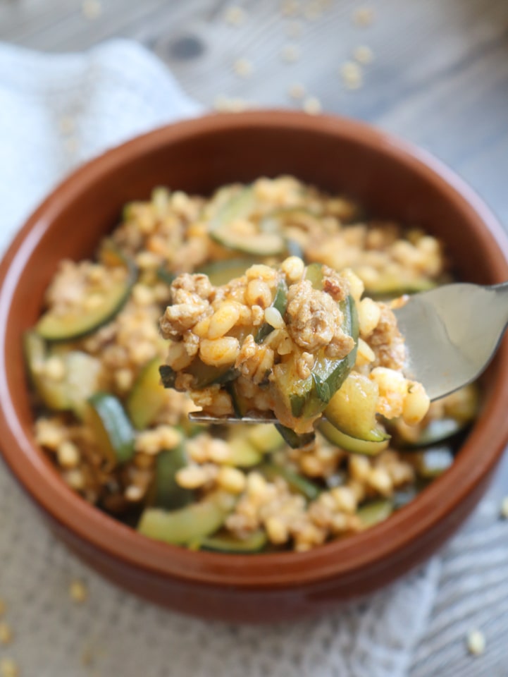 Weizenreis Hack Pfanne mit Zucchini